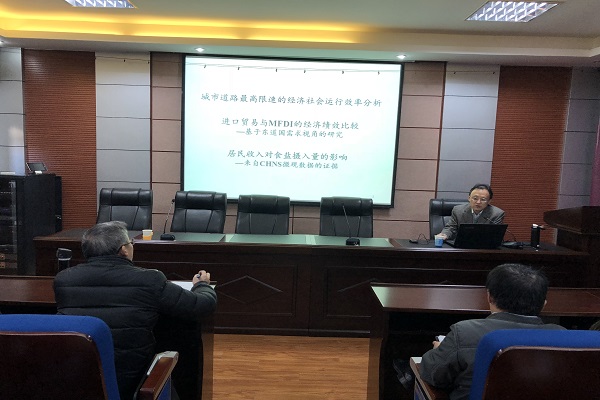 12月11日下午,在国际经贸学院翼轸楼三楼报告厅内,山东理工大学学术委员会副主任,二级教授,博士生导师李平莅临我校国贸学院讲学。国贸学院首席教授许统生老师,副院长刘建等学院教师与研究生、博士生参加了本次学术活动,活动由许统生教授主持。