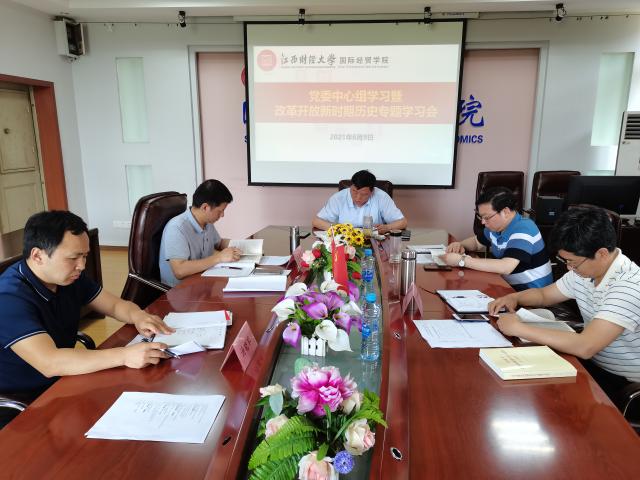 6月9日上午,国际经贸学院召开党委中心组学习会,围绕改革开放新时期历史进行了专题学习研讨,会议由党委书记胡建国主持,学习研讨会采取看、读、学、研四种形式举行。