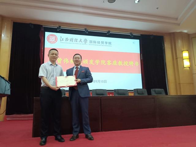 关于个人成长方面,曾伟鼓励大家从五个方面入手:养成健全的体魄。培养对个人的自信。参与社团,多进行社交。补齐自己短板。树立正确爱情观念。他建议大家将社会看为自己的另一个课堂,尝试去社会中锻炼自身,体验参与社会的感觉,与社会建立联系。曾伟在提倡积极运动方面,建议同学们养成可以驱动未来持续锻炼的体育爱好,强健体魄。分享会最后,吴朝阳院长给曾伟颁发了“国贸学院客座教授”聘书。