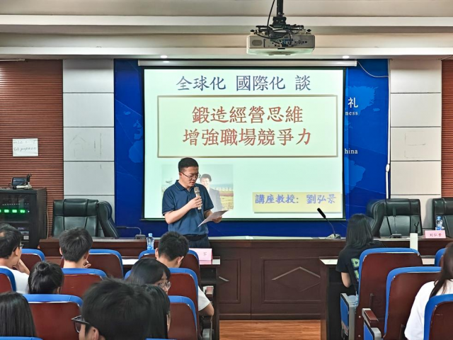 11月1日下午,美国Huron University企业管理博士、台湾实践大学管理学院刘弘景教授应邀在蛟桥园北区翼轸楼三楼3333室开展学术讲座,讲座的主题为《经营思维增强职场竞争力》。在本次讲座中,国际经贸学院邓军教授担任主持,国际经贸学院部分教师及博士、硕士研究生到场聆听讲学。