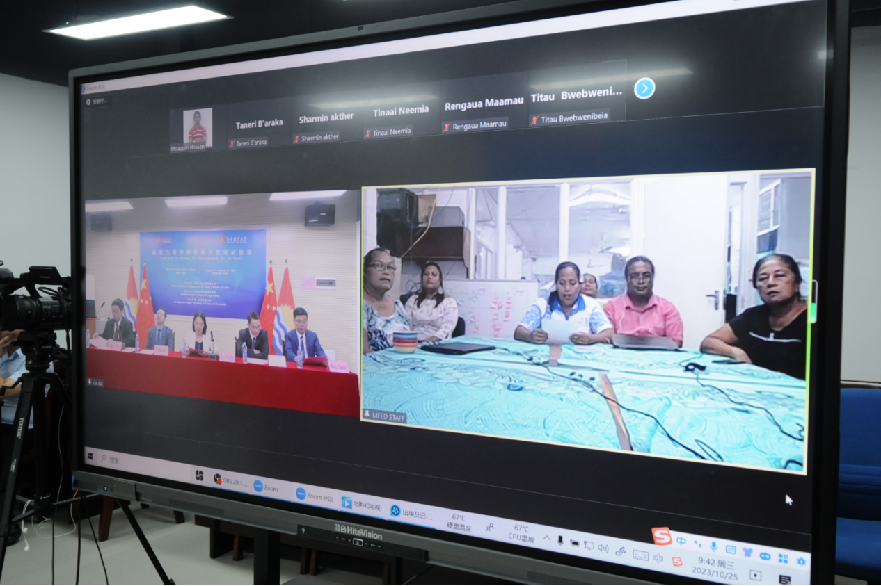 On the morning of October 25, the online graduation ceremony of "Seminar on Income Tax Management for Kiribati" sponsored by the Ministry of Commerce and co-sponsored by Jiangxi University of Finance and Economics and Jiangxi College of Foreign Trade was held in our college. Vice President Liu Xiaoli attended the ceremony and delivered a speech, Gong Meijun, Director of the International Cooperation and Exchange Office, Wu Zhaoyang, Dean of the School of International Trade and Economics, Wang Shubai, Vice President, staff of the Overseas Student Work Office and all the students of the Kiribati workshop attended the ceremony.