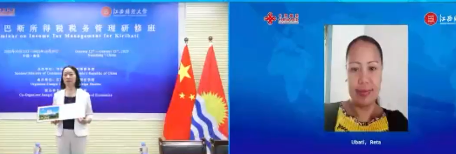 Ms. ROKOUA TEUNROKO, an official from Kiribati Taxation Bureau, spoke on the line as the representative of the participants of the workshop. She expressed her heartfelt thanks to the Ministry of Commerce for providing this valuable learning opportunity, and highly praised the course teaching, faculty strength and excellent organizational ability of Jiangxi University of Finance and Economics. She said that this workshop has benefited a lot, and she will apply the valuable experience and professional knowledge gained from this study in the future to lay a solid foundation for the future development.