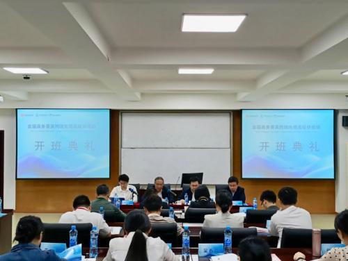 开班仪式上,江西财经大学校党委常委、副校长阙善栋代表学校致辞,江西财经大学校友总会秘书长兼校友联络服务中心主任夏贤锋代表校友服务中心发言。接着,江西财经大学继续教育学院宁亮院长进行发言,他们强调跨境电商在“双循环”战略中的重要性,为研修班奠定良好开端。最后,由江西财经大学国际经济与政治学院刘建院长为学员代表授旗,典礼过后领导、专家与学员共同合影留念。