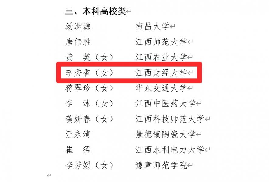 近日,江西省教育厅、省人力资源和社会保障厅联合印发《关于表彰全省教育系统先进单位、模范教师和先进教育工作者的决定》,表彰全省教育系统先进单位60个、模范教师90名、先进教育工作者10名,我院李秀香教授荣获“全省模范教师”称号。