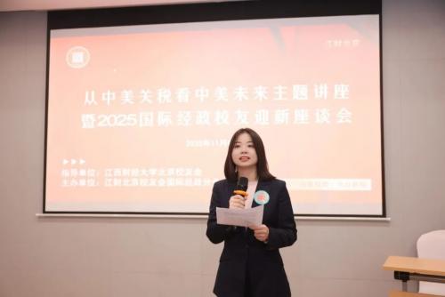 江西财经大学国际经济与政治学院刘建院长首先致辞,分享了学院更名背景与发展新貌,同时诚挚邀请校友常回校交流指导,助力学院打造人才培养摇篮与思想高地。让在座的校友真切感受到母校蓬勃生长的活力,也为自己身为江财人而倍感骄傲。