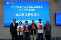 10月18日,第三届全国国际经济学本科生学术论坛在西南财经大学召开。该论坛由全国高校国际贸易学科协作组青年论坛与西南财经大学联合主办,由西南财经大学国际商学院、金融安全与发展创新引智基地及中国(四川)自由贸易试验区综合研究院共同承办。电子商务专业2022级本科生李显锋在刘建教授与汪俊波老师指导下撰写的学术论文入选该论坛并获评二等奖。国际经济与贸易专业2022级本科生朱文英在范冬梅老师和袁红林教授指导下完成的论文入选该论坛并获评三等奖。