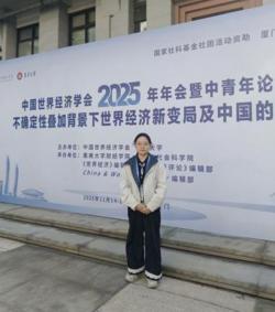 11月14日至16日,中国世界经济学会和集美大学在厦门联合举办“中国世界经济学会2025年年会暨中青年论坛”。我院国际经济与贸易专业2022级本科生朱文英,应邀出席本次会议,在“中青年论坛(二):新质生产力培育、智能制造与产业升级路径(下)”报告了《能效标识制度对中国制造业出口企业加成率的影响》一文。该论文围绕环境规制与企业绩效展开深入探讨,对于我国贸易高质量发展具有重要的参考意义,引发了现场人员的浓厚兴趣与热烈讨论。中国世界经济学会年会是国内世界经济学科最高级别的学术会议,在国际金融和国际贸易等领域具有重要影响力。